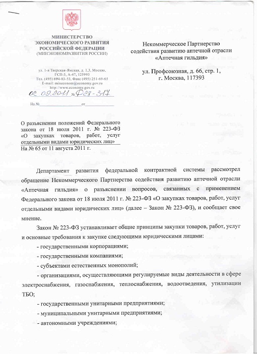 Ответ Минэкономразвития