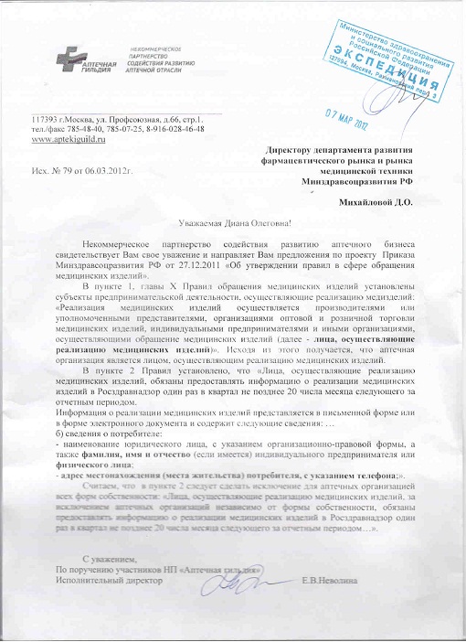 Предложения в проект Приказа Минздравсоцразвития