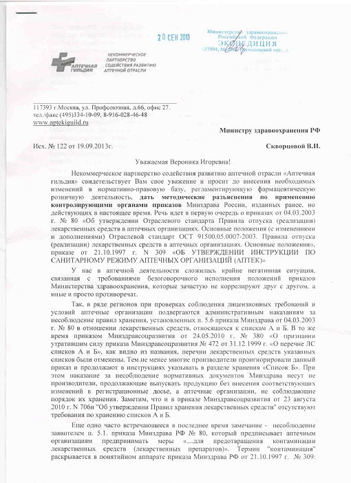 Письмо в Минздрав